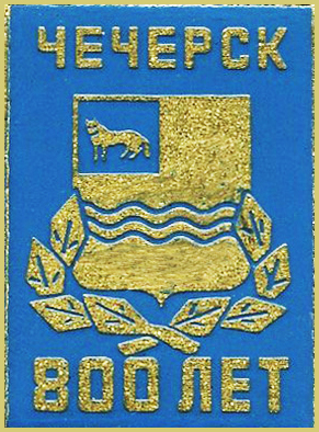 Ориентировочно в 80-х - 90-х годах выпускался сувенирный значок с такой геральдической эмблемой Чечерска. Источник фото - "Фалеристика-Инфо" |