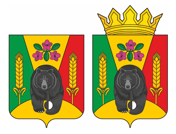 "В дважды наискось разнонаправлено рассечённом, наподобие расширяющихся вверх лучей, зелёном, золотом и червлёном поле, – чёрный медведь прямо, с серебряными когтями, стоящий на всех лапах на золотой земле, и удерживающий передней левой лапой, загнутой вправо, рассечённый на чернь и серебро шар; медведь сопровождаем – с каждой стороны по золотому вырастающему из оконечности колосу, а вверху (в золоте) – ветвью багульника (рододендрона) о трёх зелёных листьях и трёх пурпурных цветках".