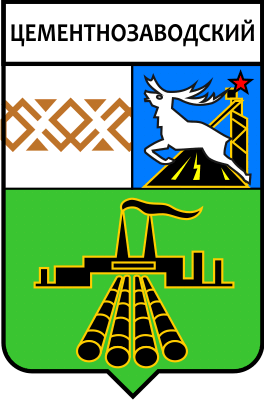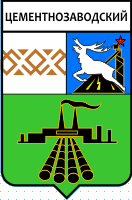 Геральдистом-энтузиастом С.А.Акатовым выпускался сувенирный значок с такой эмблемой пгт. Цементнозаводский (авт. дат. проекта - 1971 г.; реализация в виде значка - кон. 90-х - нач. 2000-х). Видимо, этот вариант эмблемы не использовался и не утверждался официально. Материалы геральдического архива В.Маркова. |
