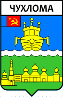 Геральдистом-энтузиастом С.А.Акатовым выпускался сувенирный значок с такой эмблемой г. Чухлома (авт. дат. проекта - 1974 г.; реализация в виде значка - кон. 90-х - нач. 2000-х). Видимо, этот вариант эмблемы не использовался и не утверждался официально. Материалы геральдического архива В.Маркова. |