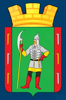 "В зеленом поле между включенными червлеными узкими краями, каждый из которых обремененными тремя крепежными костылями с обращенными внутрь щита головками, справа серебряным между двумя золотыми, слева наоборот - древнерусский воин в серебряных шлеме и доспехах, червленых рукавицах и сапогах, с черным поясом с золотой пряжкой и золотым ножом в подвешенных ножнах, и в такой же рубахе и черных штанах, опирающийся правой рукой на бердыш с серебряным лезвием и золотым древком".
