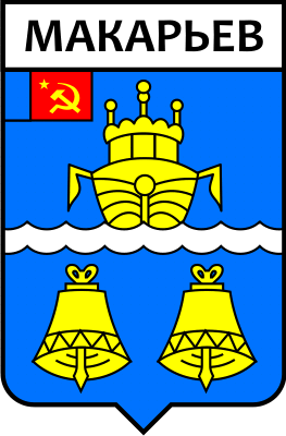 В 1860 году составлен проект герба Макарьева: В лазоревом поле золотой колокол. В вольной части герб Костромской губернии. Щит увенчан серебряной башенной короной о трёх зубцах, за щитом положены накрест два золотых молотка, соединенные Александровской лентой. Материалы геральдического архива В.Маркова (Санкт-Петербург); рисунок подготовлен для "Геральдикума" Ю.Калинкиным (г.Долгопрудный) |