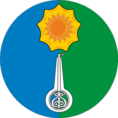 Геральдическое описание гласит: "В рассеченном лазоревом и зелёном поле вверху – подобный звезде золотой бубен, обременённый теневым солнцем с короткими пламенеющими лучами, внизу – серебряный хомус".