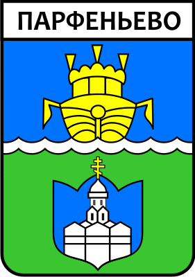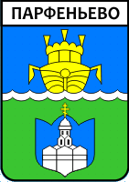 Геральдистом-энтузиастом С.А.Акатовым выпускался сувенирный значок с такой эмблемой c. Парфеньево (авт. дат. проекта - 1985 г.; реализация в виде значка - кон. 90-х - нач. 2000-х). Видимо, этот вариант эмблемы не использовался и не утверждался официально. Материалы геральдического архива В.Маркова. |