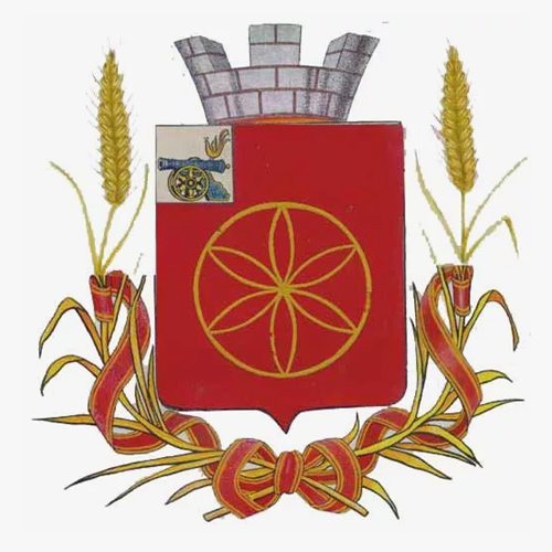 Вариант изображения герба Рудни с обрамлением (не в соответствии с рекомендациями Геральдического совета). Такой герб использовался на официальном сайте Руднянского района (рудня.рф) в 2022 году. |