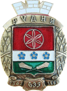 Клубом "Родник" выпускался значок к юбилею города Рудни. Авторы значка поместили в центре сочиненную ими неофициальную эмблему Рудни. Фото значка - Каталог значков (MediaWiki.org) |