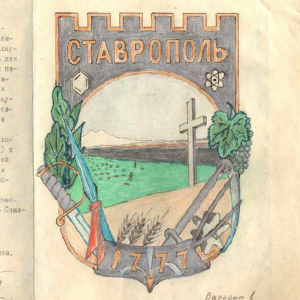 В 1841 году проект герба Ставрополя был составлен начальником Кавказской области генерал–лейтенантом П.Х.Граббе: в верхней части пересеченного щита изображался православный крест и венок, в нижней - сноп. Крест иллюстрировал название города ("ставрос" - крест) Проект не получил поддержки в Герольдии. Использованы текстовые материалы и изображение проекта герба на сайте "Ставрополье - край родной" |