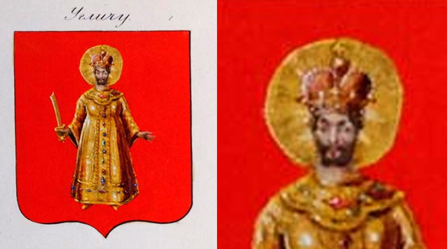 Неутверждённый проект герба Углича (1863) также содержал изображение царевича Дмитрия Иоанновича. Рисунок подготовлен для "Геральдикума" Ю.Калинкиным |